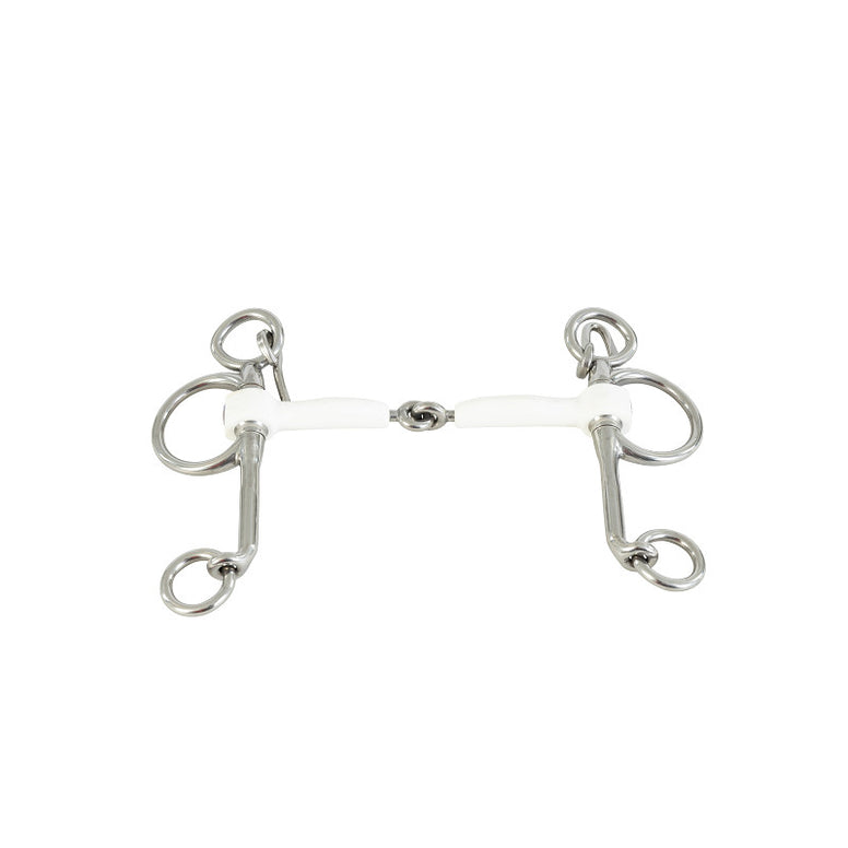 Combineert de functie van een trens én een stang en trens in één mondstuk. Te gebruiken met één teugel (i.c.m. pelhamriempjes) of met twee teugels voor nauwkeurige dosering van druk.