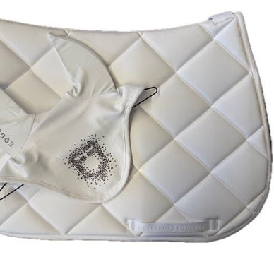 Equestro Luxury Jumping Set Pony – White Saddle Pad & Ear Bonnet with Rhinestone Detail