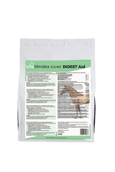 VitaMinalia Equine Digest Aid is a powerful supplement specifically developed to optimize your horse's digestion and gut health . It supports natural gut flora, helps regulate bowel movements, and contributes to better nutrient absorption. Essential for horses with sensitive stomachs, irregular manure, gas, or after antibiotic treatments.
