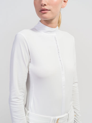 Long sleeves : Ideal for cooler competition days and at the same time provides an extra elegant look under a competition jacket.