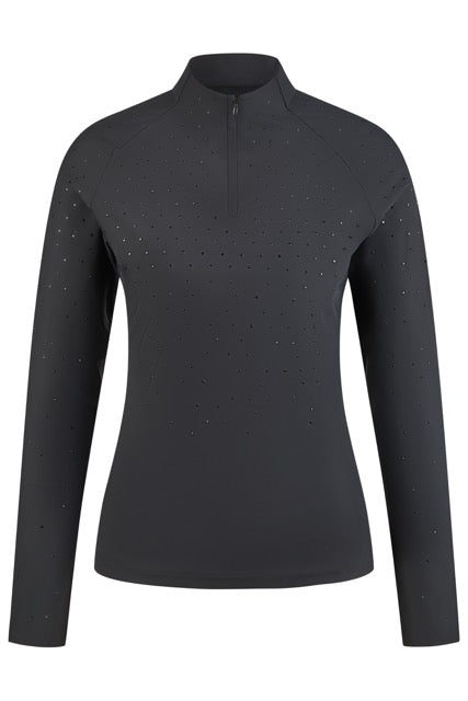 Het PIKEUR Selection Function Zip Shirt is een elegant en functioneel trainingsshirt voor ruiters die zowel prestaties als stijl belangrijk vinden. Dit damesrijshirt uit de exclusieve Pikeur Selection-lijn combineert technische materialen met verfijnde details, waardoor het perfect is voor trainingen, warming-ups of een stijlvolle look op stal.