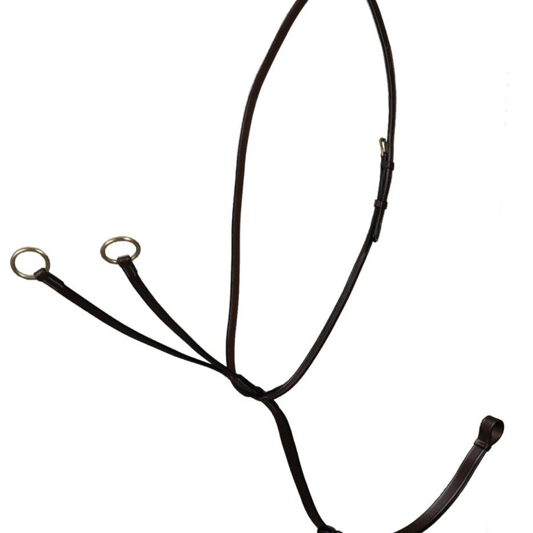 The roller buckle attachment makes it easy to attach the martingale to a hunting collar or breastplate, while the brass buckles and rings provide a classic, durable finish. Ideal for show jumpers, eventers, or recreational riders looking for refined support during training.
