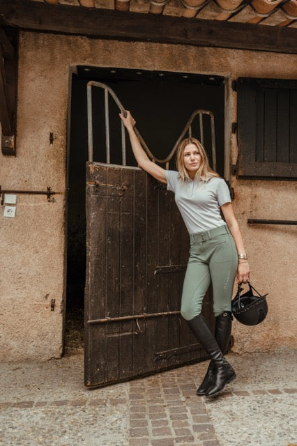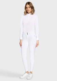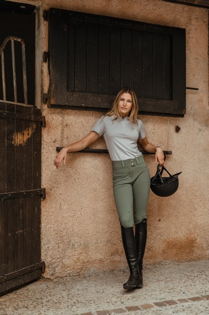 Combineer de Samshield Clara Premium rijbroek met een technisch Samshield wedstrijdshirt en een elegant rijjasje voor een comfortabele en stijlvolle wedstrijdoutfit.