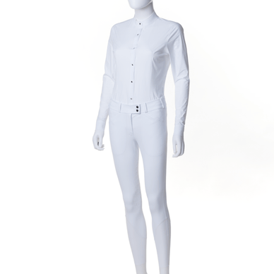 The Freejump Melody women's competition blouse is a refined combination of style, technology, and sublime comfort . Designed for the modern rider who wants to perform at the highest level without compromising elegance. Thanks to seamless thermal bonding and innovative materials, this blouse feels like a second skin – light, supple, and silky-soft.