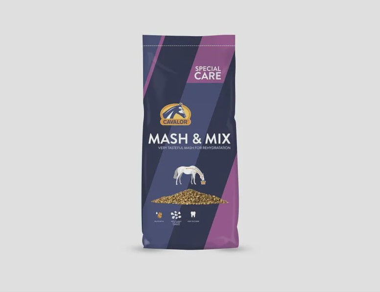 Cavalor Mash & Mix is an easily digestible, nutritious mash with a delicious aroma and flavor. This mix stimulates the appetite, supports recovery after exercise, and promotes a healthy fluid balance. The ideal meal for sport horses, seniors, or sensitive horses – in an affordable 15kg package.