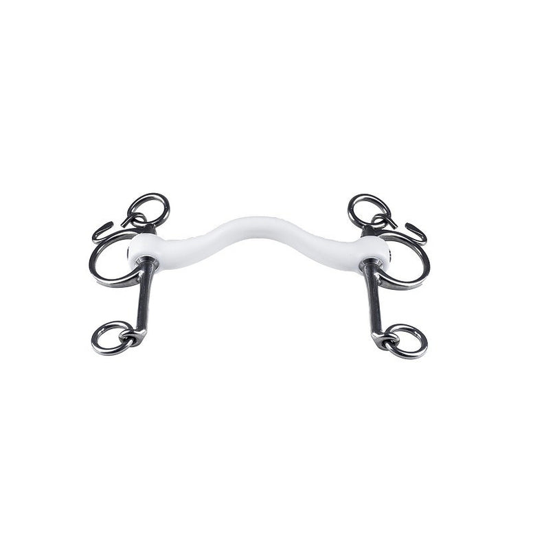 Het Port Medium mondstuk heeft een lichte tongboog (tongvrijheid), waardoor de druk meer verdeeld wordt over de lagen en minder constant op de tong ligt. Dit maakt het bijzonder geschikt voor paarden die gevoelig zijn op tongdruk of die zich vastzetten bij een recht of dubbelgebroken bit. Het Inno Sense materiaal is licht flexibel en glad afgewerkt, wat zorgt voor een aangename acceptatie, zelfs bij paarden die moeilijk worden op metaal.