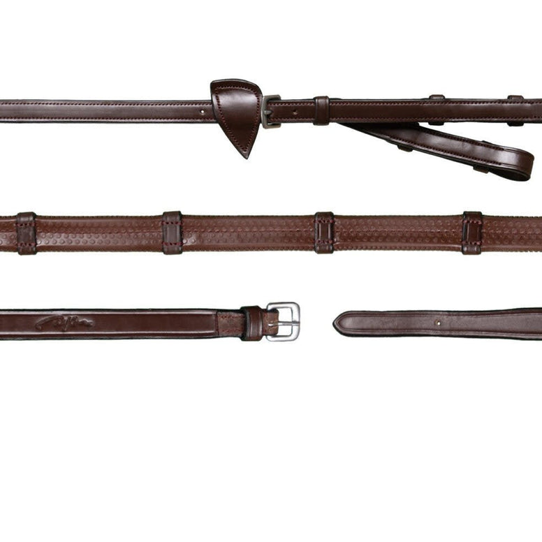 Ces rênes en caoutchouc avec 7 boucles en cuir sont conçues pour les brides kandare et permettent aux cavaliers de monter avec une seule rêne sans compromettre le contrôle. Idéales pour ceux qui recherchent simplicité, adhérence et raffinement.