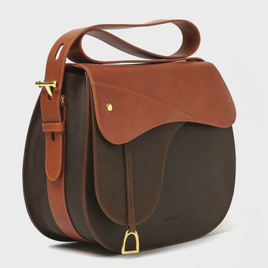 Inspiré de la forme traditionnelle d'une selle, le sac Luxury Saddle Bag allie savoir-faire artisanal et simplicité scandinave. Confectionné en cuir pleine fleur raffiné, orné de coutures élégantes et d'une fermeture iconique en forme d'étrier dorée, ce sac dégage une élégance équestre subtile et raffinée.