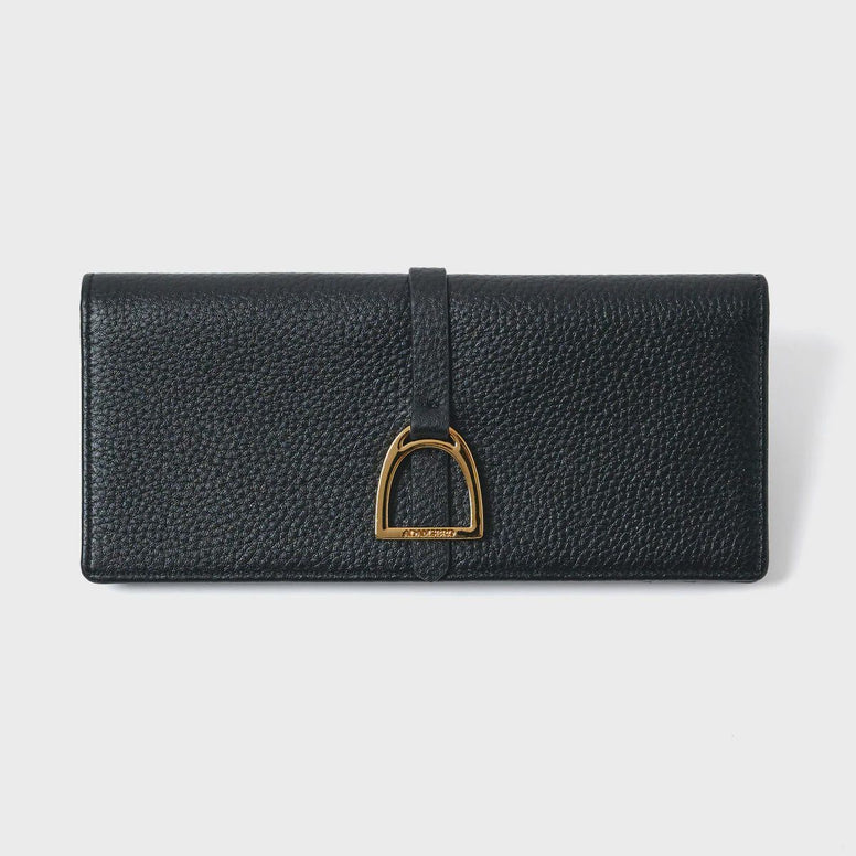 Ce portefeuille incarne un luxe discret . Que vous galopiez à travers la ville ou flâniez près des écuries, son format compact et son cuir fin apportent une touche équestre raffinée à toutes vos tenues. Le pommeau doré en forme d'étrier évoque subtilement votre passion pour les chevaux – un style élégant sans ostentation.