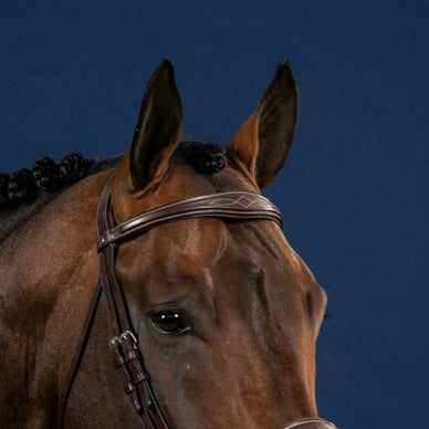 Ce frontal anatomique de la collection Hunter de Dy'on est conçu pour un ajustement parfait et un soulagement subtil de la pression autour du front de votre cheval. Sa forme légèrement incurvée épouse la ligne naturelle de la tête et offre un confort accru sans compromettre son style classique et élégant.