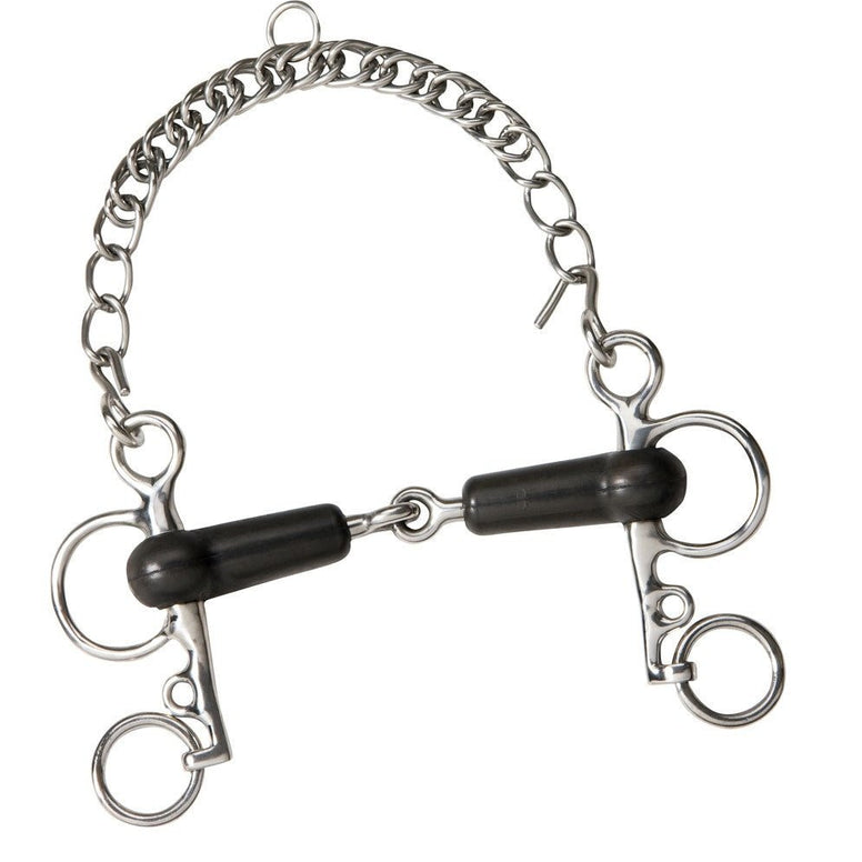 Le mors Pelham Feeling Baby, avec son canon monobloc en caoutchouc, est un mors doux et efficace pour les chevaux nécessitant parfois un contrôle accru. Grâce à ses branches courtes (110 mm), ce mors Pelham offre une action plus douce qu'un mors Pelham standard, tandis que son canon de 21 mm en caoutchouc plein assure une répartition de la pression douce et uniforme.