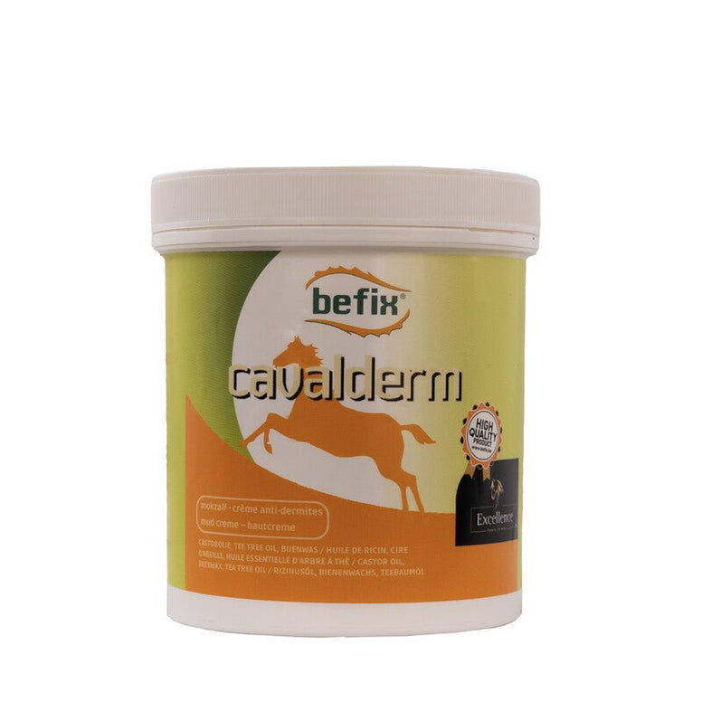 Befix Cavalderm est une crème de soin intensif spécialement conçue pour les chevaux à la peau sensible ou irritée. Qu'il s'agisse de gale de boue, de frottements, de piqûres d'insectes ou d'irritations cutanées dues à la pluie et à la boue, Cavalderm favorise le processus naturel de cicatrisation de la peau tout en formant une barrière protectrice contre les agressions extérieures.