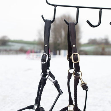 Conseil du cavalier : Pour un look encore plus élégant, associez ce licol à une longe en cuir assortie ou à une étiquette nominative personnalisée.