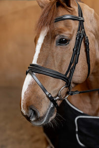 Conseil du cavalier : Un bridon bien ajusté améliore non seulement le confort, mais aussi la concentration et la détente de votre cheval – le bridon rembourré HFI offre cela avec style.