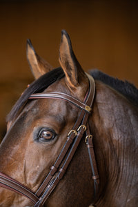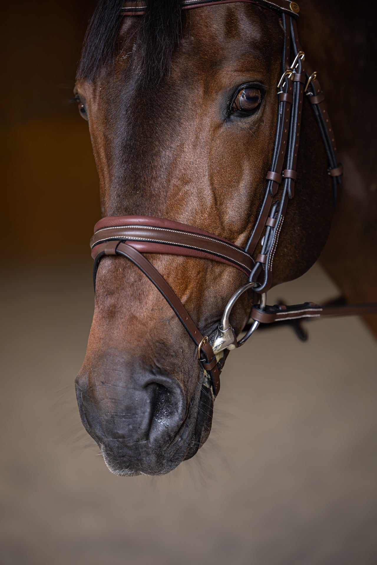 Le bridon rembourré HFI est conçu avec le plus grand soin pour le bien-être de votre cheval et une esthétique raffinée. Chaque élément de ce bridon est de forme anatomique et généreusement rembourré de cuir souple et doux , assurant une répartition optimale de la pression et un confort parfait, même lors des longues séances d'entraînement.