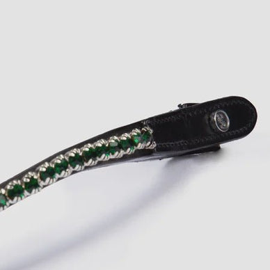 Le frontal Sleek Emerald de PS of Sweden allie élégance, fonctionnalité et confort , idéal pour les cavaliers qui aiment varier les styles. Confectionné en cuir noir de haute qualité et orné de cristaux émeraude étincelants, ce frontal offre une allure luxueuse et chic.