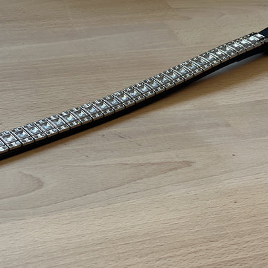 Orné d'une rangée de cristaux noirs étincelants qui scintillent avec élégance à chaque mouvement, sans ostentation, ce frontal rehausse le raffinement de tout bridon.