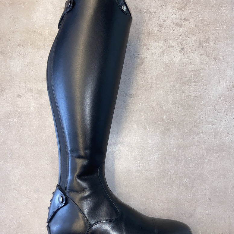 Montez en selle avec style grâce à la botte d'équitation DeNiro Italo/01 : une combinaison raffinée de classe, de confort et de savoir-faire. Cette version sans lacets dégage une élégance pure, idéale pour les cavaliers qui apprécient une allure épurée et racée en carrière.