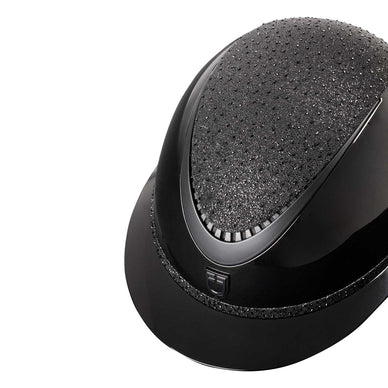 Le casque de sécurité Equestro à large visière et strass est conçu pour les cavaliers exigeants qui ne veulent faire aucun compromis entre protection, confort et style. Ce casque élégant allie une coupe moderne et légère à une finition luxueuse ; il est idéal pour le dressage, le saut d'obstacles ou les balades à cheval.