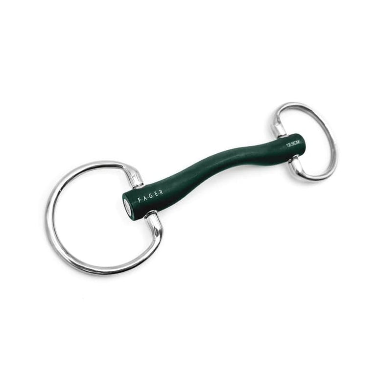 Le mors Andrea en caoutchouc dur à anneaux fixes offre une connexion stable et directe tout en conservant le confort du caoutchouc. Idéal pour les chevaux nécessitant une position de bouche constante et des aides précises, sans matériaux rigides.