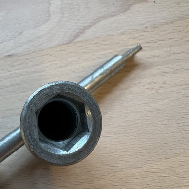 La clé à crampons Michel Vaillant Fastuds est une clé à serrage ingénieusement conçue , spécialement développée pour une pose rapide et sûre des crampons FASTUDS® et des crampons Michel Vaillant standard à tête hexagonale . Grâce à son trépan intégré, elle permet également de déboucher les trous de crampons sales ou obstrués en un seul geste – idéal pour les compétitions ou les entraînements sous pression.