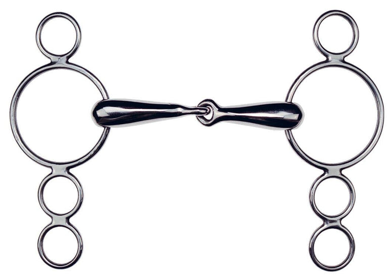 Les quatre anneaux permettent un réglage facile de la pression et de l'action des rênes, rendant ce mors adapté aussi bien aux cavaliers débutants qu'aux cavaliers confirmés. Idéal pour diverses disciplines, comme le saut d'obstacles ou le dressage.