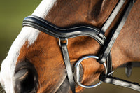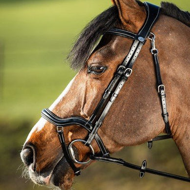 Ce bridon de forme anatomique est spécialement conçu pour éviter les points de pression sur les zones sensibles de la tête du cheval, comme l'arête du nez, les pommettes et les oreilles. La muserolle large et rembourrée et la têtière incurvée assurent une répartition optimale de la pression et un confort maximal, même lors de longues séances d'entraînement ou de compétitions.