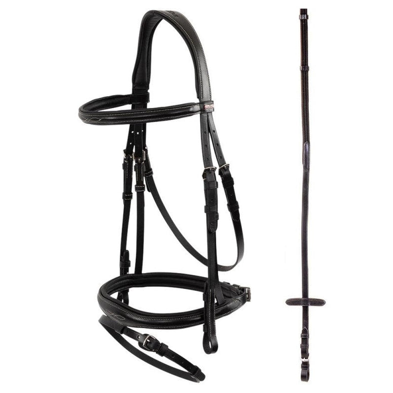 Le bridon Premiere Dax offre tout ce que l'on attend d'un bridon moderne : qualité supérieure, confort et une finition élégante et sportive – pour un cheval qui non seulement se déplace bien, mais qui a aussi une allure fantastique.