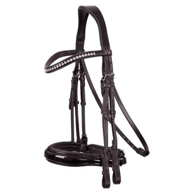La muserolle extra-large et rembourrée répartit la pression uniformément , tandis que la têtière anatomique réduit la pression sur la nuque. Grâce aux boucles réglables et aux doubles montants, ce bridon s'ajuste parfaitement pour un confort optimal.