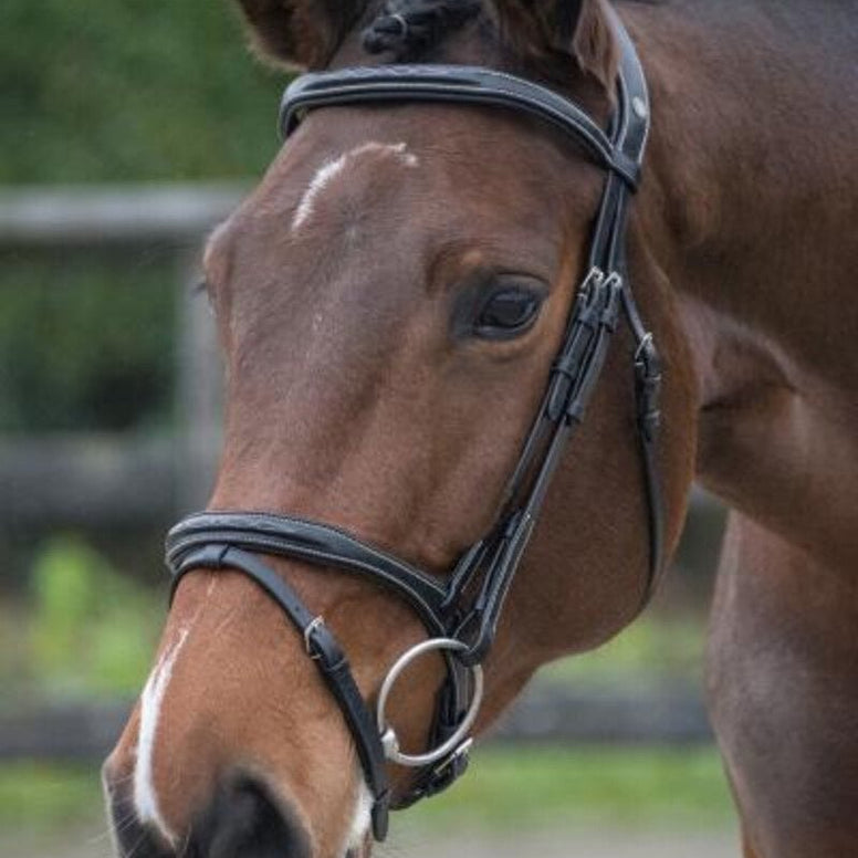 Muserolle combinée – Offre une plus grande stabilité et empêche le cheval de serrer le mors.