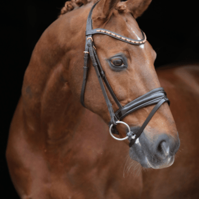 Frontal incurvé orné de détails en or rose ou de subtiles paillettes : offre une allure raffinée qui complète parfaitement le reste du bridon.