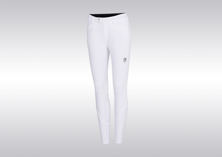 Fermeture élastique aux jambes : Un empiècement extensible fin au niveau des chevilles offre un confort supplémentaire sous les bottes d'équitation, sans coutures gênantes ni points de pression.