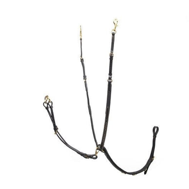 La martingale de chasse LJ Leathers avec élastique court allie avec brio style classique et fonctionnalité moderne. Confectionnée en cuir de buffle robuste, elle arbore d'élégantes surpiqûres décoratives et des boucles en laiton pour une finition luxueuse et durable. L' élastique court intégré offre une flexibilité et un confort accrus à votre cheval, tandis que le mousqueton permet une fixation rapide et sûre à la selle.