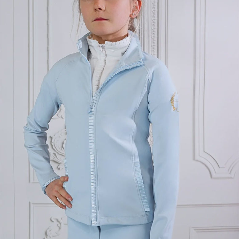 La finition élégante à volants le long de la fermeture éclair et du col rend ce cardigan totalement résistant aux poneys et il est du plus bel effet avec le pantalon d'équitation Joline assorti !