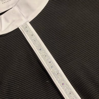 Conseil : Associez la chemise Julia Crystal Leaf à une veste de compétition Samshield et à un pantalon d'équitation haut de gamme pour une tenue de compétition luxueuse !
