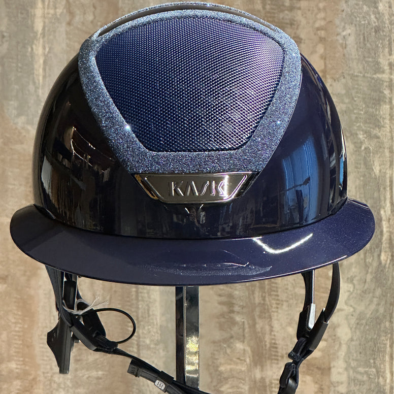 Le casque Kask Star Lady Pure Shine, orné de cristaux bleu marine et doté d'une monture chromée noire, est idéal pour la cavalière élégante qui apprécie le raffinement et une touche de glamour. Ce casque sublimera votre tenue, aussi bien en compétition qu'à l'entraînement.