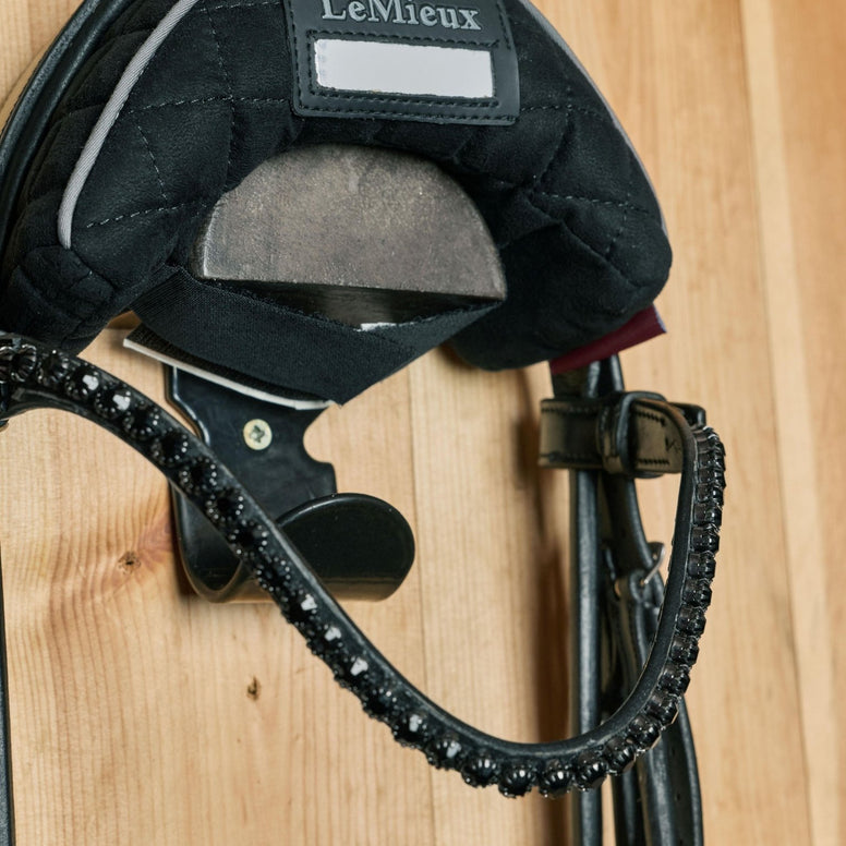 Votre équipement mérite les mêmes soins que votre cheval. Avec le tapis de bride LeMieux noir, offrez à votre bride le soin et l'élégance qu'elle mérite. Ce tapis offre un support moelleux et rembourré à la têtière lorsque la bride est suspendue à l'écurie ou transportée en van. Il empêche l'équipement de se déformer ou de se coller, prolongeant ainsi considérablement sa durée de vie. Avec sa discrète touche de cuir verni, son passepoil contrastant et l'étiquette signature LeMieux, cet accessoire allie fonctionnalité et style. Idéal pour le cavalier exigeant qui privilégie la qualité et la présentation, à l'écurie comme en compétition.