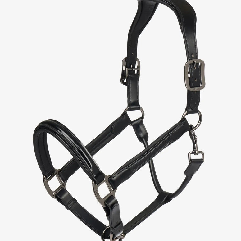 Ce licol sublime votre cheval et lui confère instantanément une allure élégante, aussi bien à l'écurie qu'en compétition. Le licol LeMieux en cuir verni noir est conçu pour le cavalier exigeant qui recherche qualité, style et confort, que ce soit en compétition ou simplement pour promener son cheval avec style dans le couloir de l'écurie. Grâce à ses finitions en cuir verni, son cuir subtilement gaufré et ses boucles en métal foncé, ce licol dégage une allure luxueuse sans être ostentatoire. La têtière anatomique répartit la pression de manière plus uniforme sur la tête du cheval, et le rembourrage supplémentaire de la têtière et de la muserolle assure un confort immédiat. Ce licol améliore non seulement le style, mais facilite également la manipulation, car un licol confortable est un allié précieux lors des manœuvres, de la mise à l'écurie ou du transport.