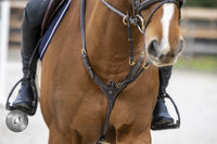 Confectionnée en cuir anglais souple de première qualité , cette martingale allie durabilité, douceur et finitions professionnelles. Son design s'harmonise parfaitement avec les autres produits de la gamme Pro Selected Heritage et, grâce à ses sangles réglables, elle s'adapte facilement à votre cheval.