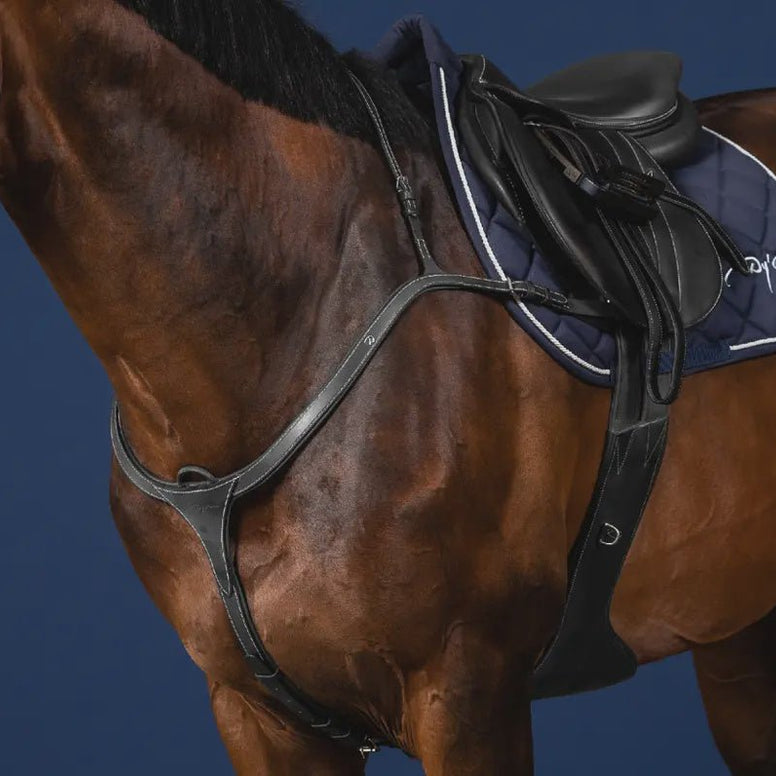 Offrez à votre cheval un confort, une liberté et une allure incomparables avec le plastron Dy'on Long Bridge de la collection US Hunter. Car la performance optimale commence par un équipement optimal !