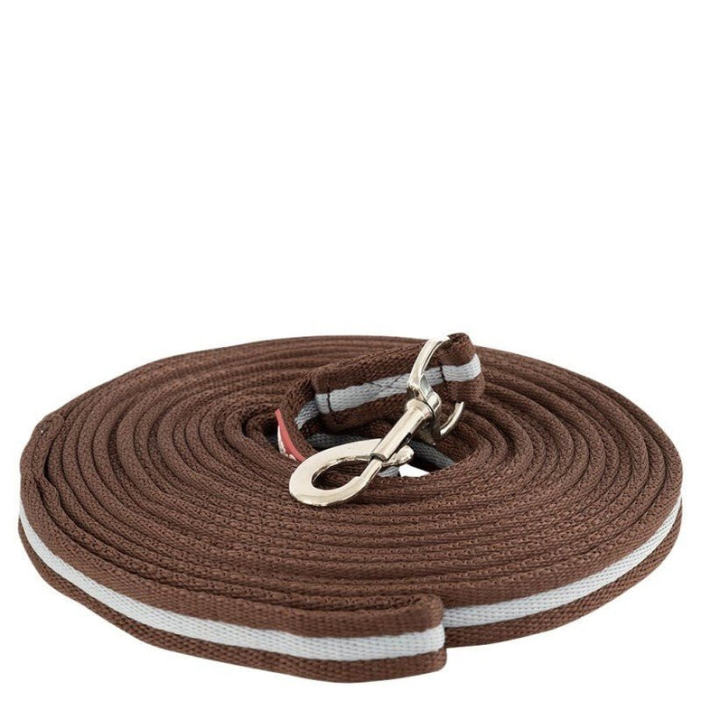 Dotée d'un mousqueton en laiton robuste , la longe se fixe facilement à une caveçon ou à un bridon. Sa longueur de 8 mètres offre une grande liberté de mouvement pour travailler efficacement l'équilibre, la souplesse et la force de votre cheval.