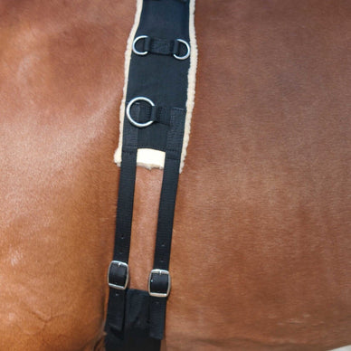 La sangle Lami-Cell noire est conçue pour un ajustement et un confort optimaux lors du travail à la longe , sans compromettre sa solidité et sa fonctionnalité. Fabriquée en nylon résistant et doublée de peau de mouton synthétique , elle offre une douceur accrue et prévient les frottements sur le dos du cheval.