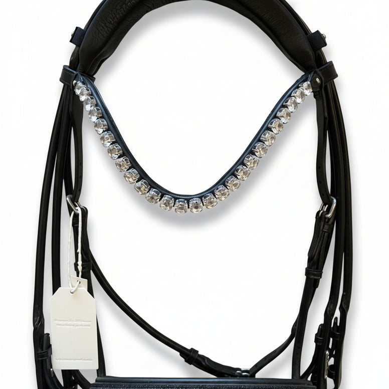 Le mors Utzon Olympic Snaffle Bit – Crystal Black Silver avec frontal Empire transparent est le choix ultime pour une performance élégante sur le ring – où confort et classe se conjuguent.
