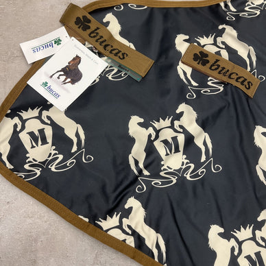 La couverture Bucas Panel Prize Cooler est une couverture polyvalente et de haute qualité , idéale comme couverture anti-transpiration, couverture de voyage, couverture de compétition, sous-couverture ou couverture d'écurie . Grâce à son tissu respirant, l'humidité est rapidement absorbée, ce qui permet de la poser directement sur un cheval mouillé.