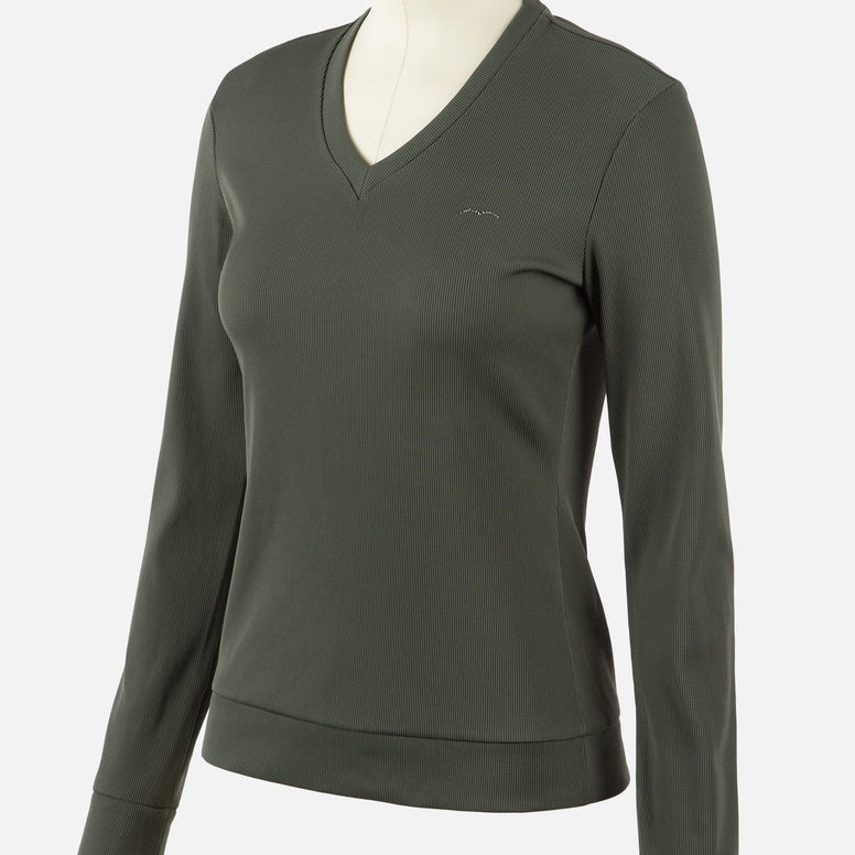 Col en V et coupe ajustée – Crée un look élégant et féminin.
