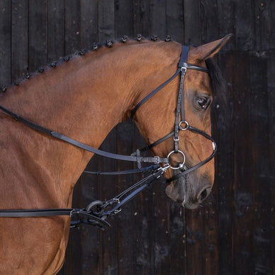 Offrez à votre cheval une expérience d'entraînement confortable et maîtrisée grâce aux rênes latérales en caoutchouc noir . Alliant la robustesse du cuir de buffle au confort du caoutchouc souple , ces rênes sont idéales pour le travail à la longe ou pour améliorer le contact sous la selle.