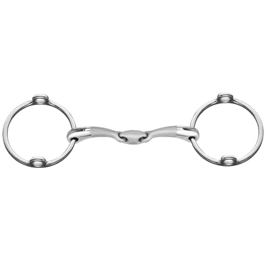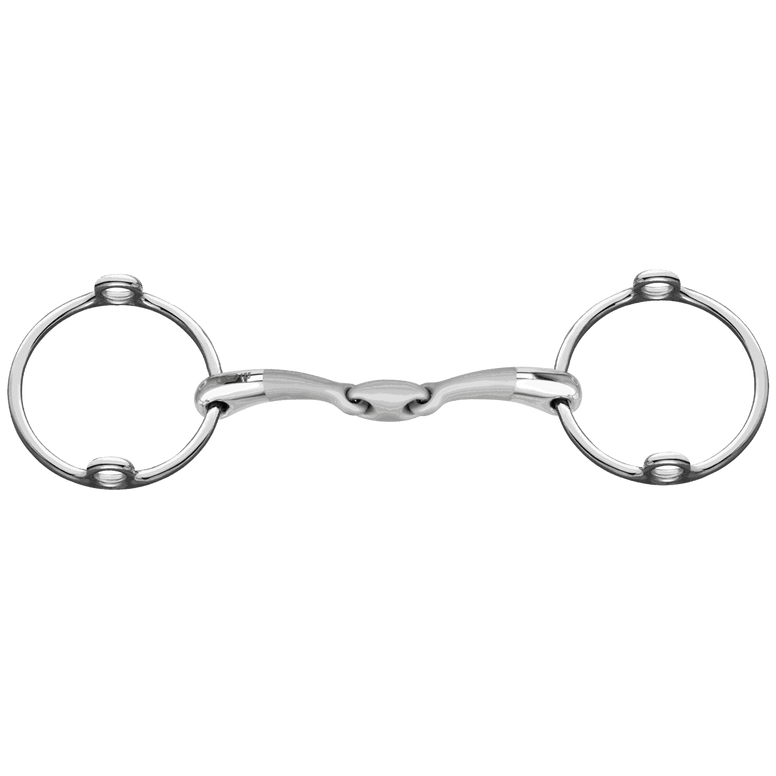 Le mors à la finition satinée est non seulement élégant, mais offre également une sensation agréable sur la langue. Sa forme légèrement incurvée crée un espace suffisant pour la langue , ce qui favorise la détente et l'acceptation, même chez les chevaux sensibles.