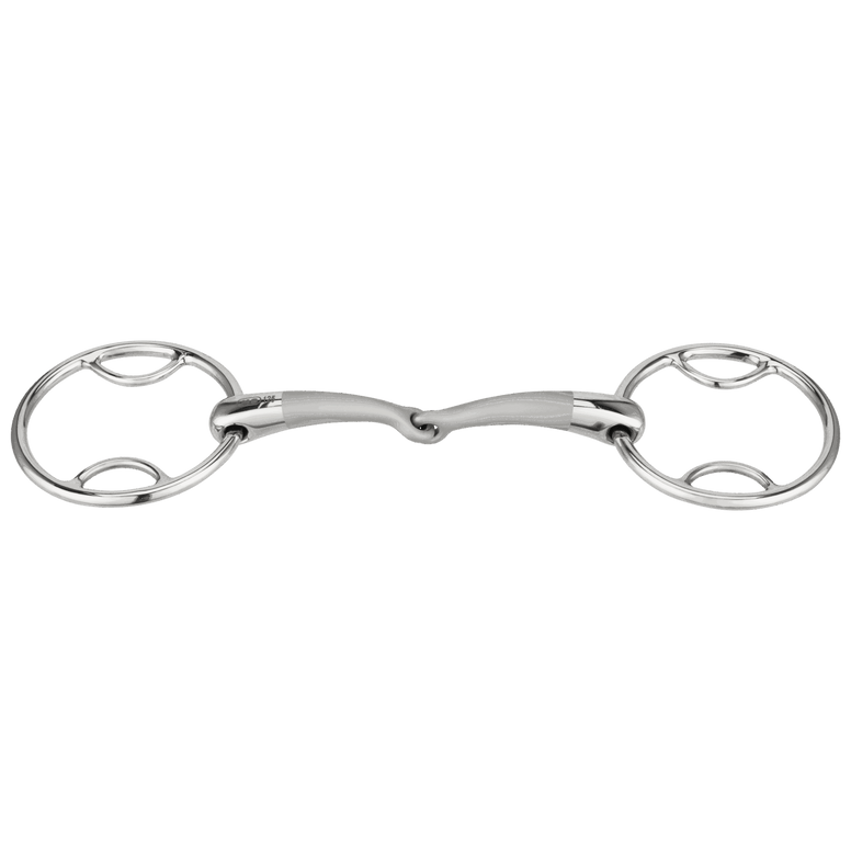 Le mors Sprenger Satinox Multi Ring , également connu sous le nom de mors Beval , est une aide précieuse pour les cavaliers recherchant un meilleur contrôle , notamment avec des chevaux énergiques ou puissants . Sa conception à anneaux multiples permet différentes positions des rênes, ce qui le rend adapté à divers objectifs d'entraînement et situations. C'est pourquoi il est particulièrement apprécié des cavaliers de saut d'obstacles, de concours complet et de tous ceux qui ont besoin d'un encadrement plus précis, tout en douceur et en responsabilité .