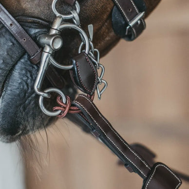 Son design est à la fois sophistiqué et minimaliste, avec une fine âme en nylon et une attache en cuir , ce qui lui permet de s'adapter à pratiquement tous les mors Pelham, du poney au cheval. Grâce à son cuir de buffle robuste tanné au chrome , ce mors résiste à un usage quotidien sans perdre sa souplesse.