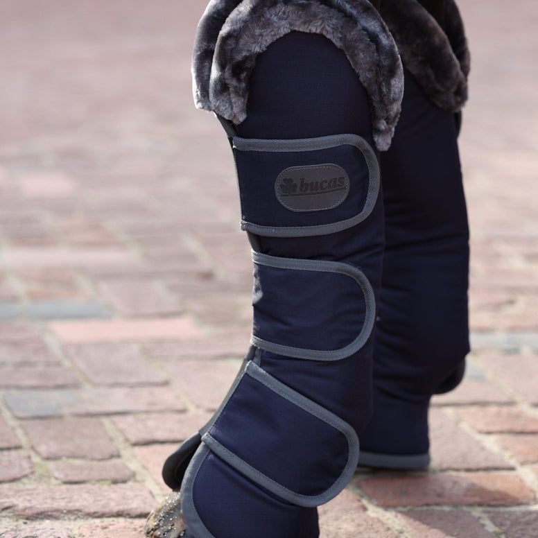 Que vous vous rendiez à une compétition ou à l'entraînement, votre cheval voyagera en toute sécurité et avec style grâce aux guêtres de voyage Bucas Show-Line . Un accessoire indispensable pour les cavaliers qui ne laissent rien au hasard.